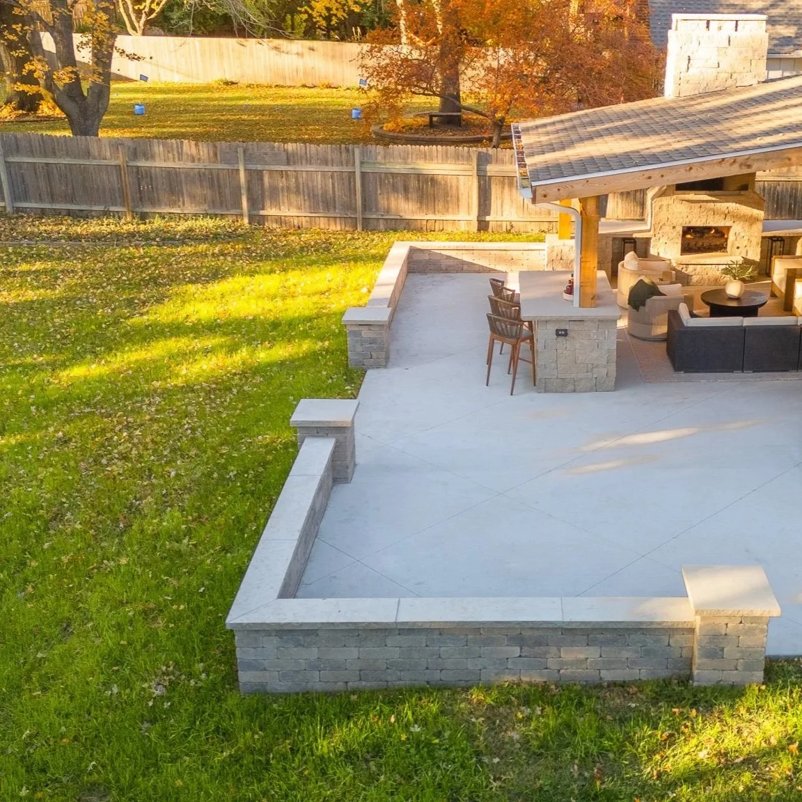 People need a reason to go outside. A defined patio with a fire pit creates a focal point. An outdoor kitchen gives people something to gather around. A pavilion with comfortable seating turns a forgotten corner of the yard into a place people actually want to spend time. A clean hardscape edge that separates the patio from the lawn gives the whole space a sense of purpose. These details matter more than most people realize.